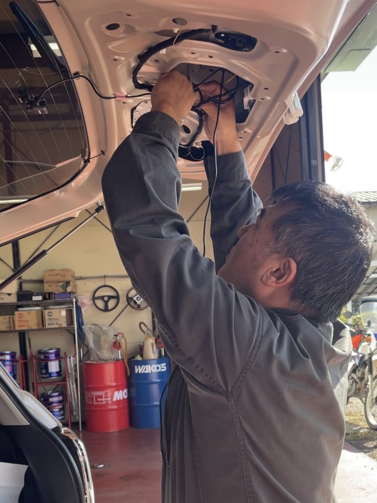 取付後は、クルマを後退させて映像がきちんと切り替わるか最終確認。