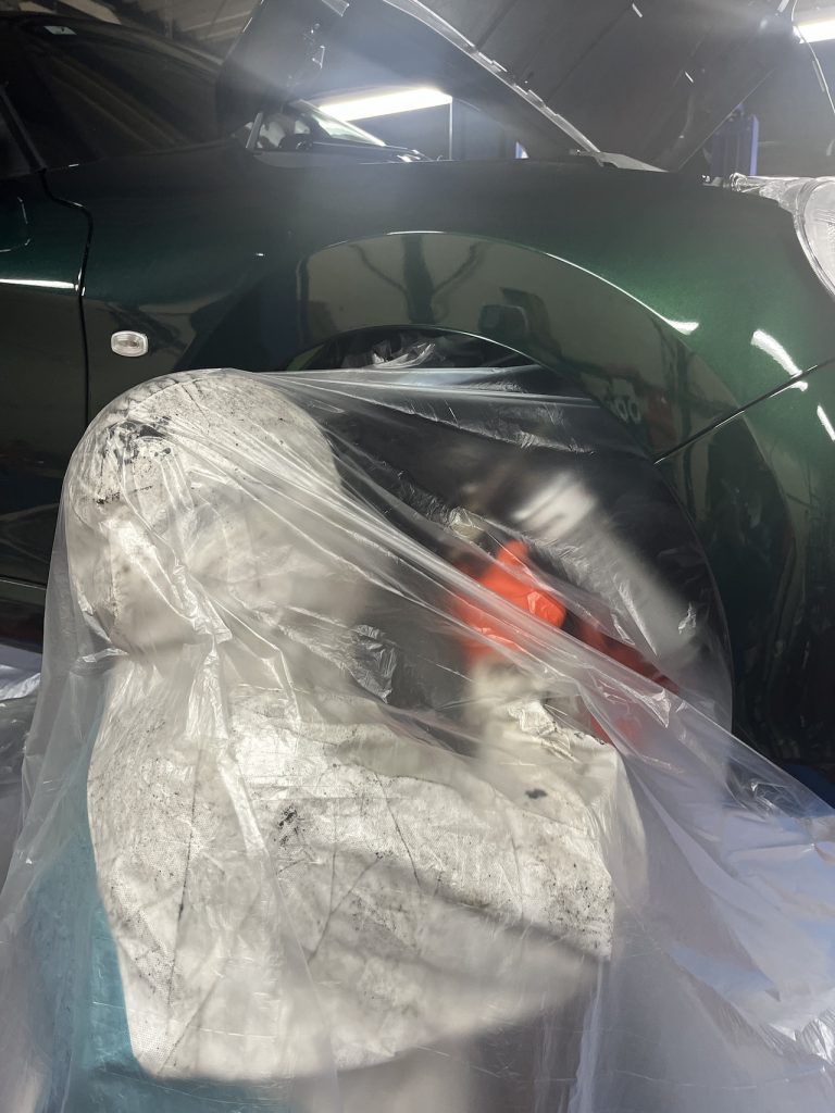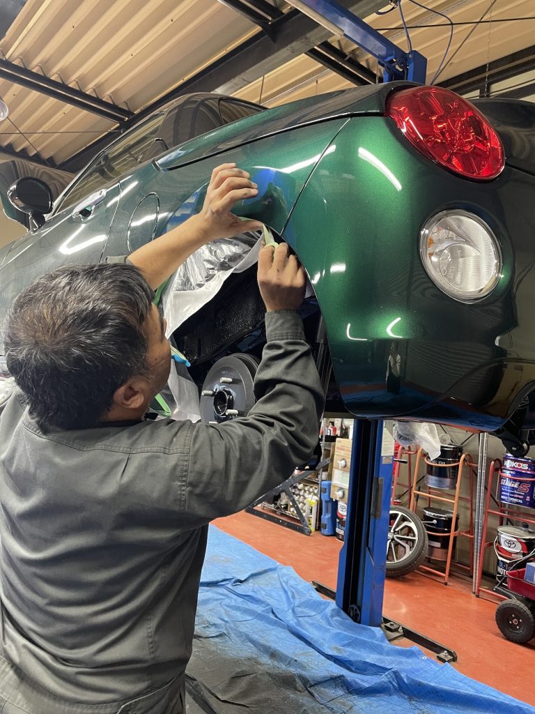 ボディに飛び散らないようにマスカーで全体を囲います。