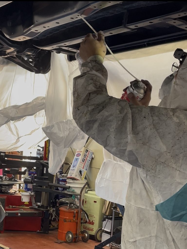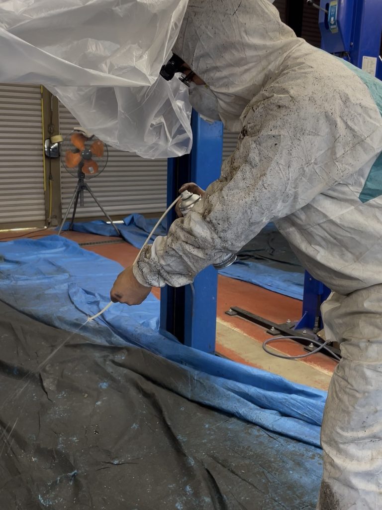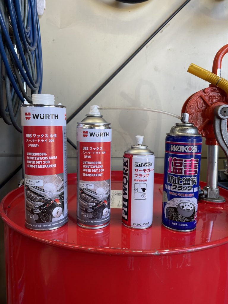 下廻りの防錆施工には、ウルトのUBSワックス 水性 スーパードライ200(半透明)を使用。