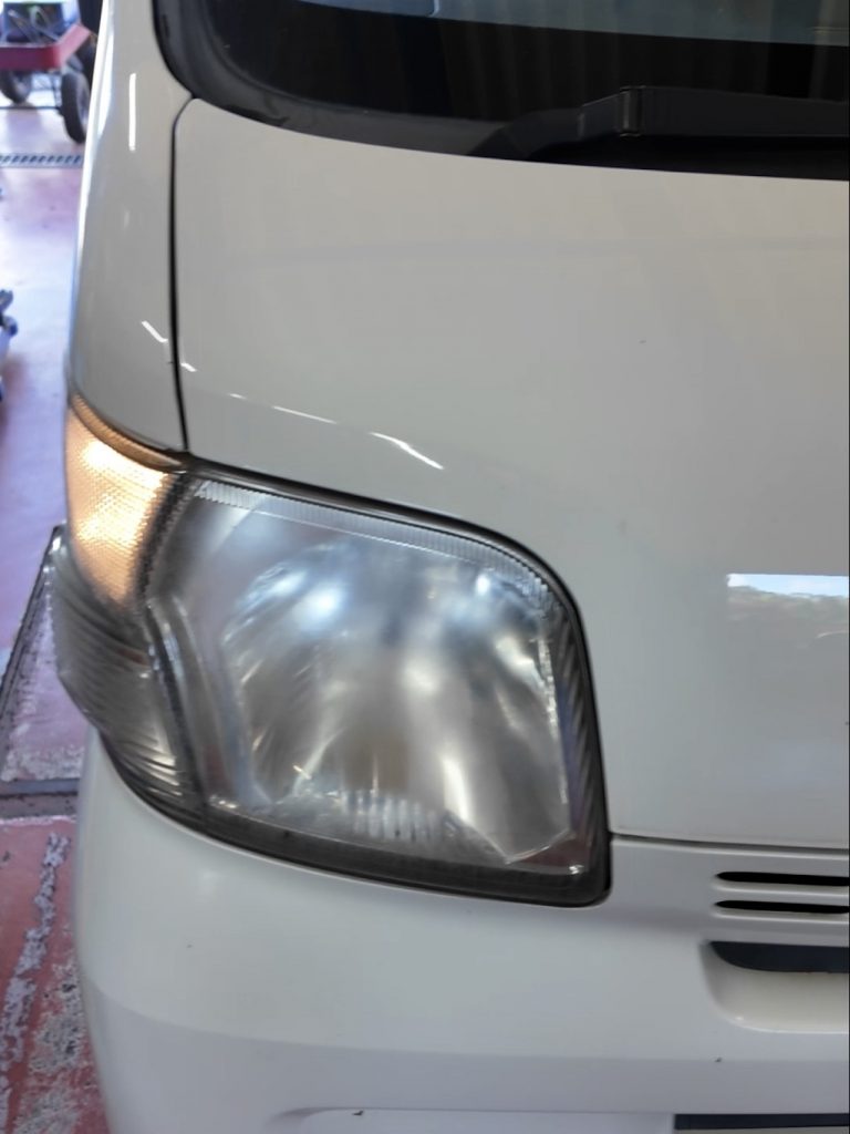 ヘッドライトレンズの表面が少し曇っていたので、簡易的な研磨作業を行いました。