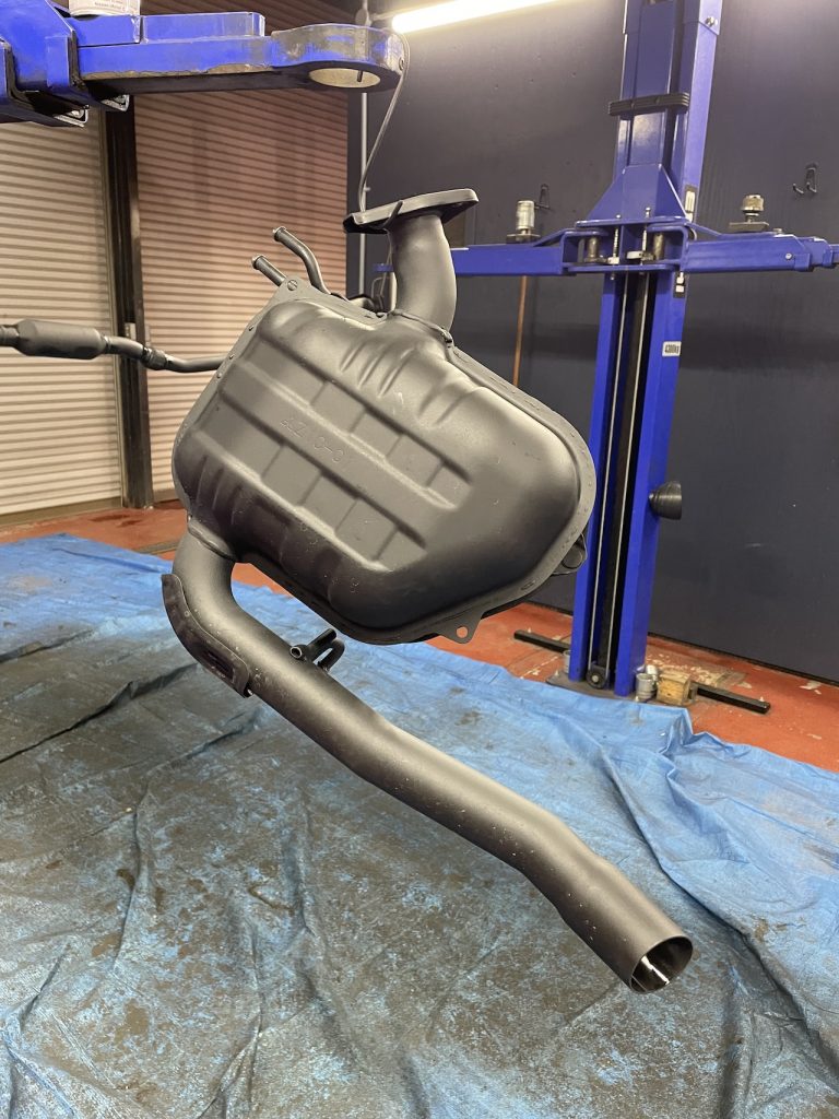 マフラーの一部は、もともと黒く塗装されていたので、塗りが薄くなっていた部分を補修しました。