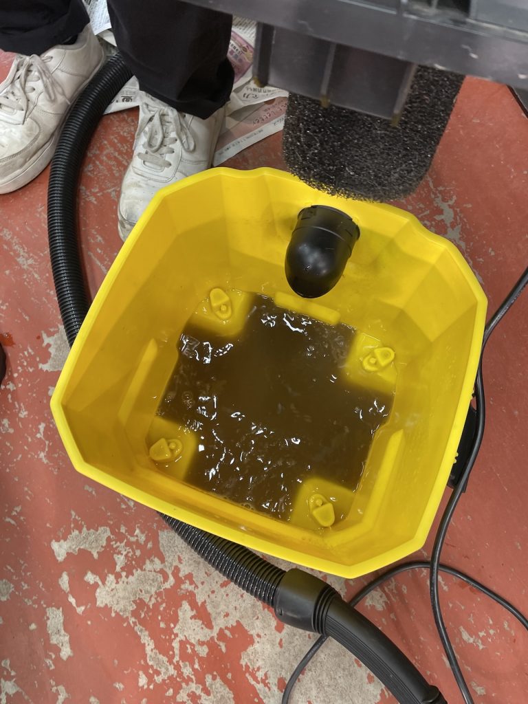 アルカリ電解水と温水で汚れを浮かせ、バキュームクリーナーで汚れをしっかり吸い出していきます。