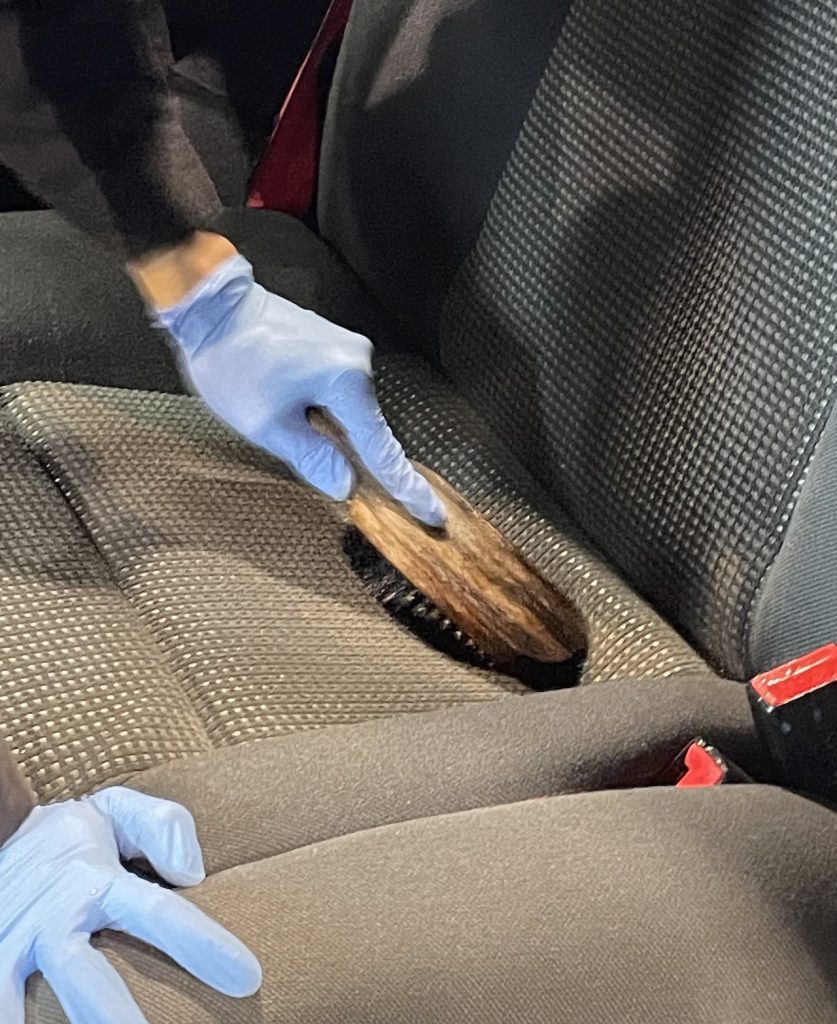 クリーナーが届かない細かな部分は、歯ブラシを使って丁寧に掻き出します。