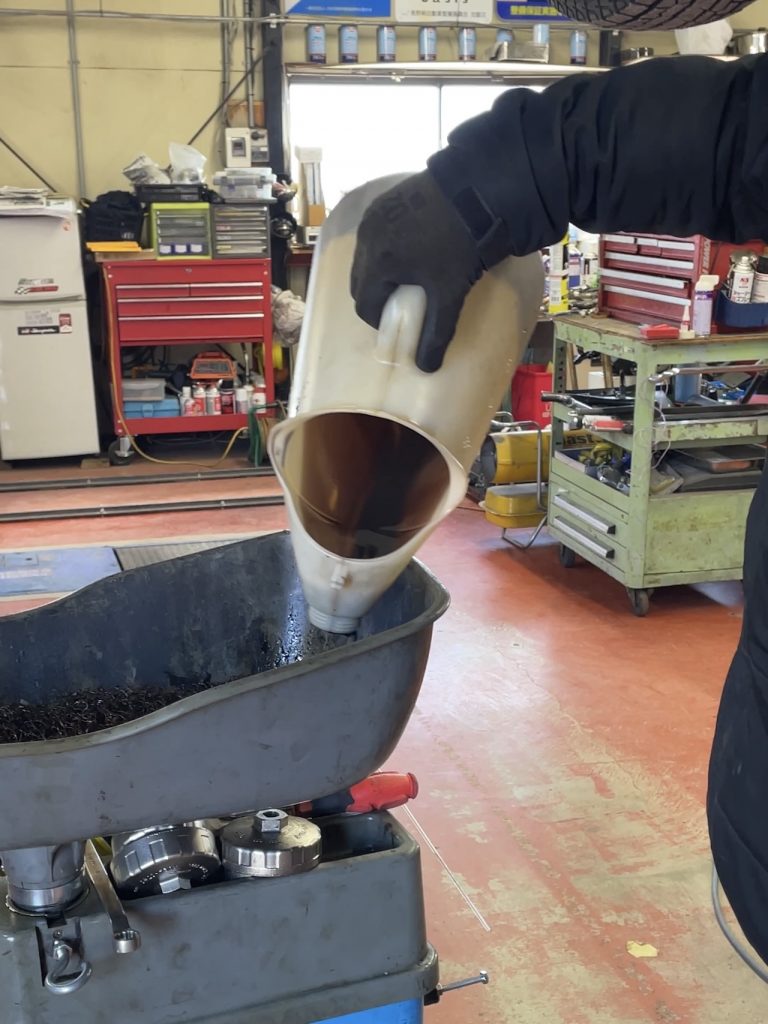 抜いたオイルは少し白っぽく、