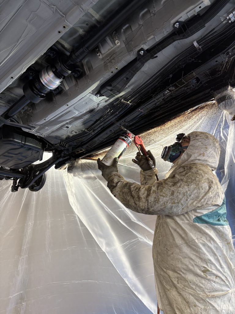 油性タイプの柔軟な保護膜が下廻りをしっかり包み込み、