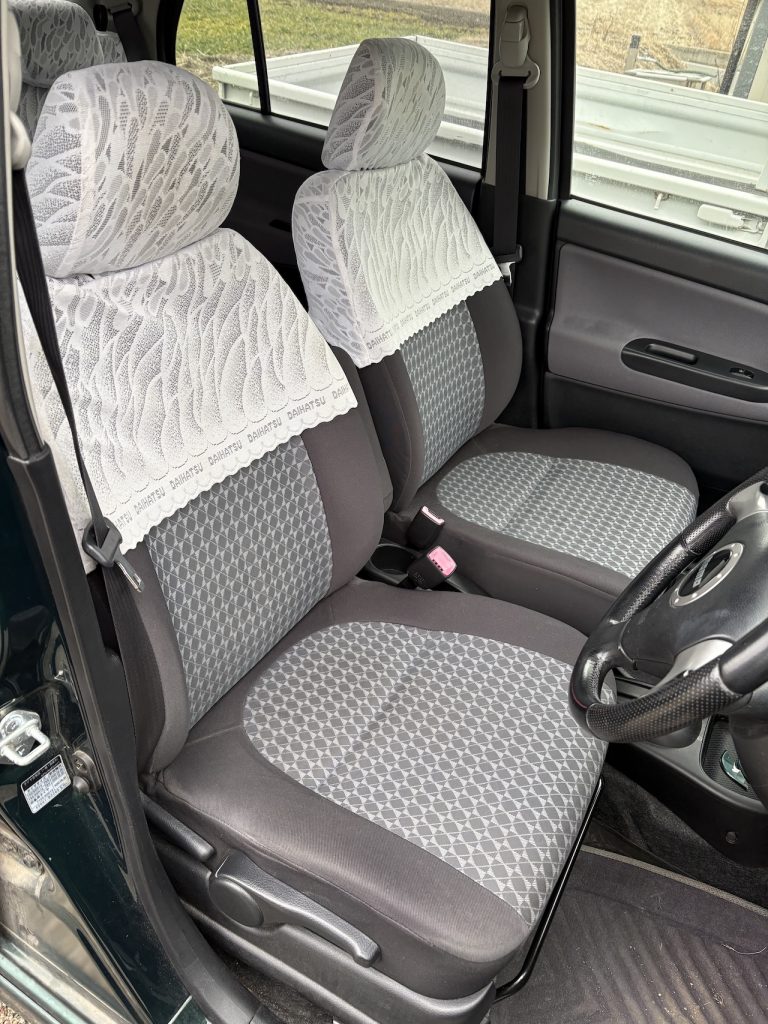 ハーフ・レースのシートカバーも、クラシックな印象によく似合っています◎