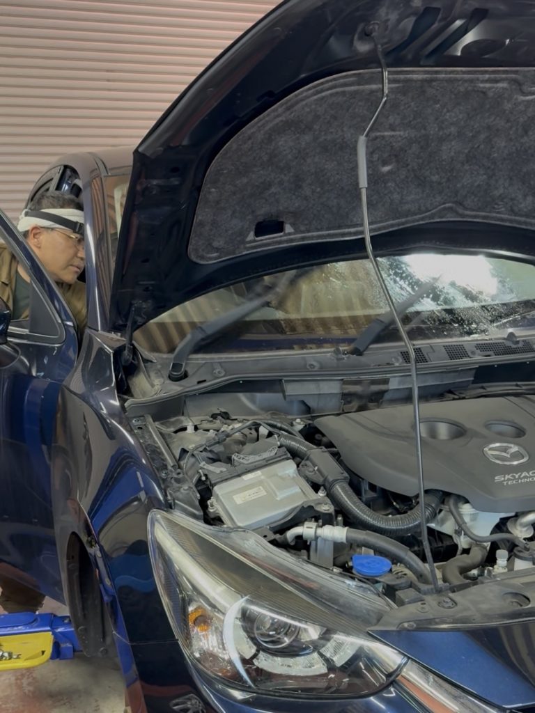 マツダ デミオ DJ5FS を車検でお預かりしました。