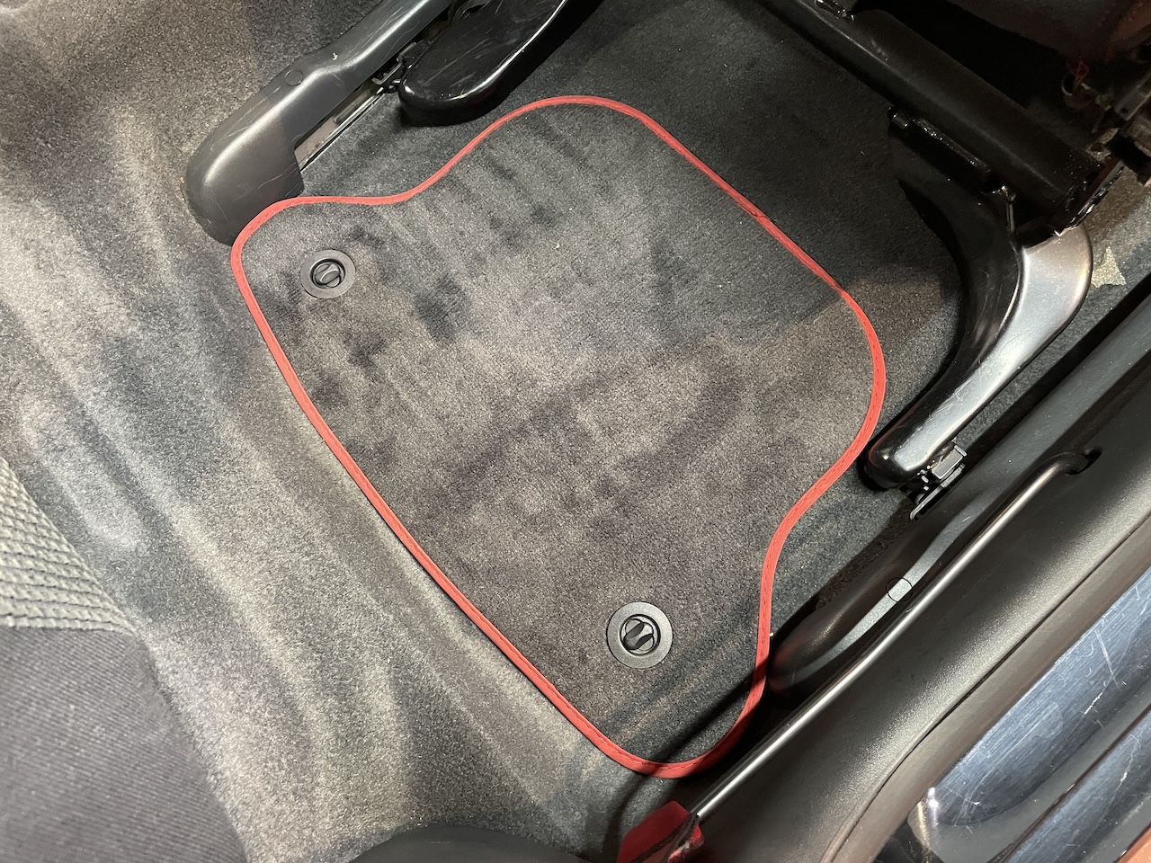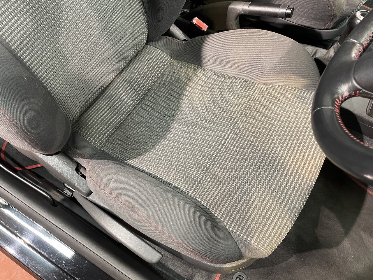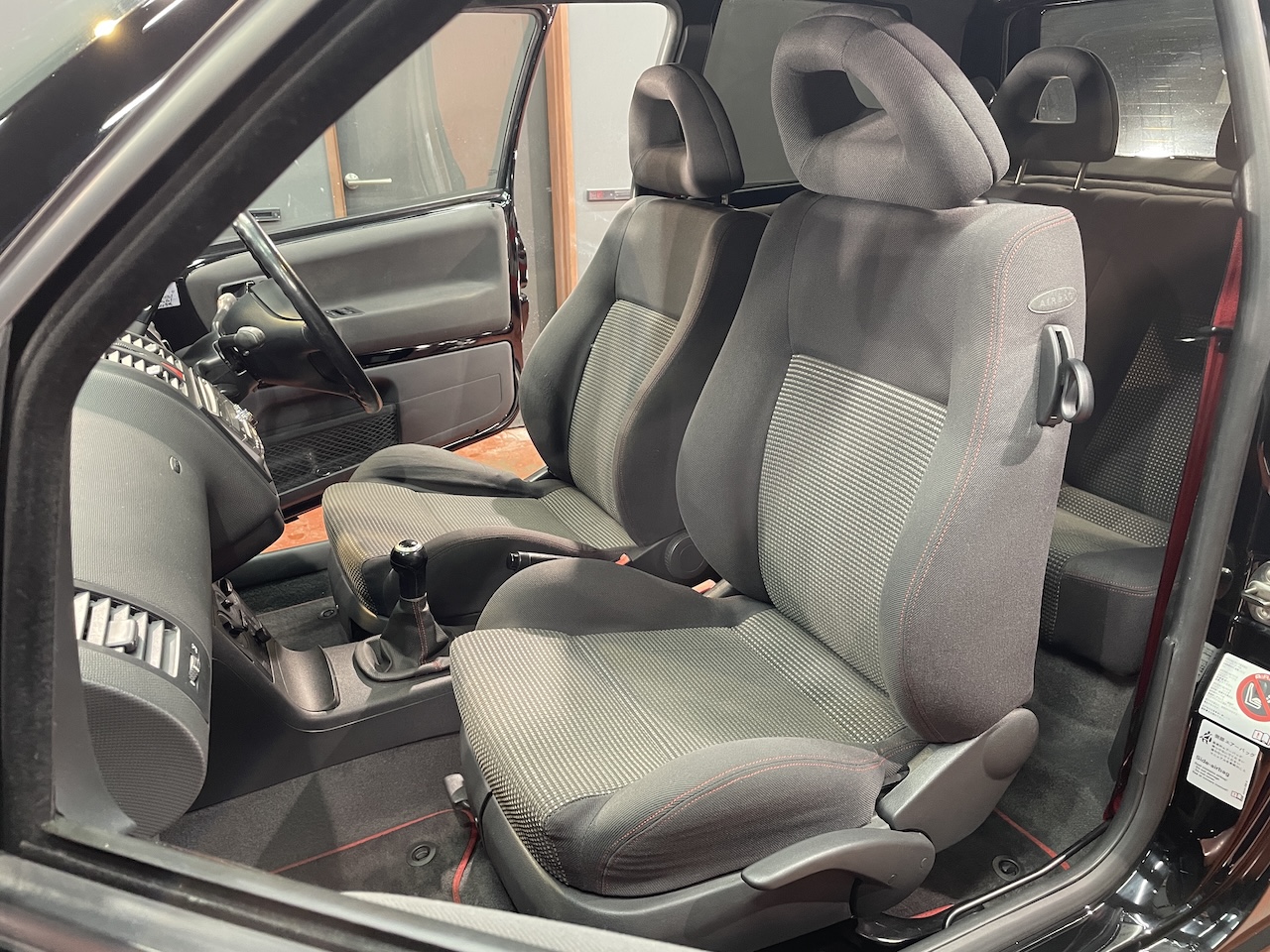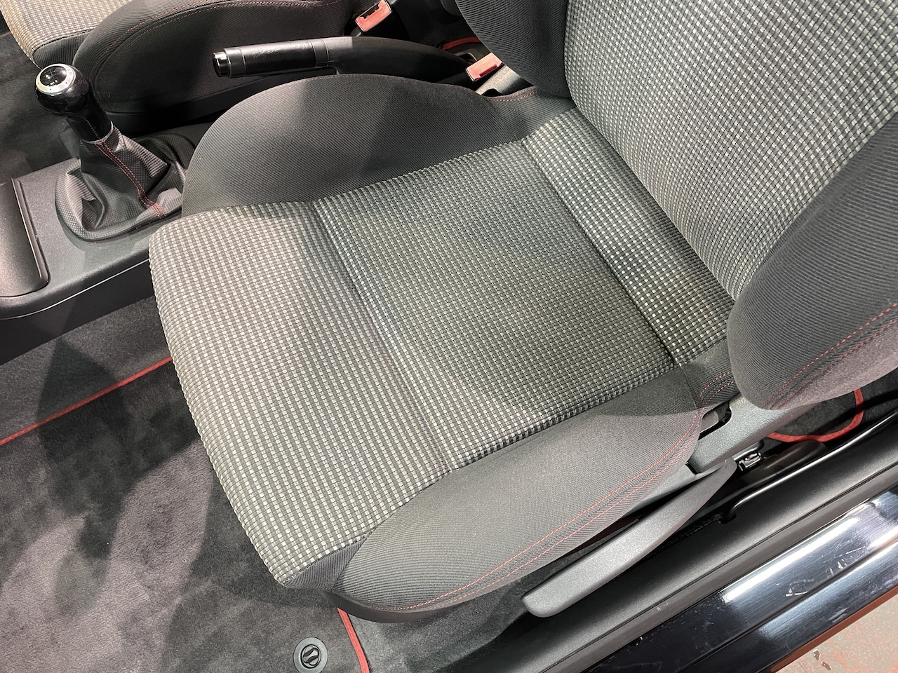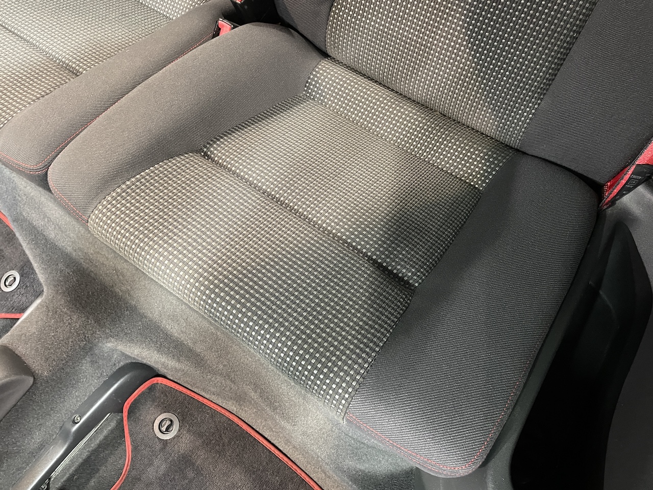 赤いステッチやシートベルトが印象的。